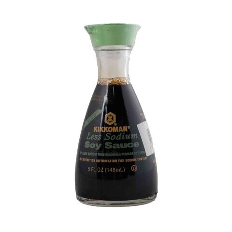 Calories in Kikkoman Less Sodium Soy Sauce and Nutrition Facts - FatSecret Kikkoman Less Sodium Soy Sauce Nutrition Facts Serving Size 1 tbsp (15 ml) Amount Per Serving Calories 10 % Daily Values* Total Fat 0.00g 0% Saturated Fat 0.000g 0% Trans Fat 0.000g Polyunsaturated Fat 0.000g Monounsaturated Fat 0.000g Cholesterol 0mg 0% Sodium 590mg 26% Total Carbohydrate 1.00g 0% Dietary Fiber 0.0g 0% Sugars 0.00g